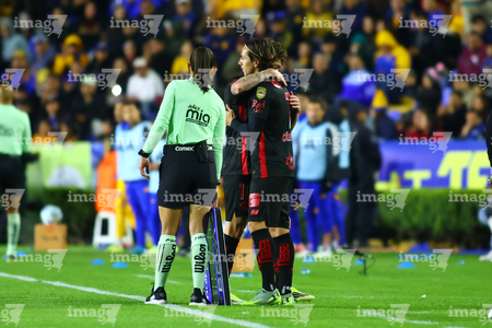 San Nicolás de los Garza, Nuevo León, 17 de enero de 2026. Árbitros, durante el partido correspondiente a la jornada 3 del torneo Clausura 2026 de la Liga BBVA MX, entre los Tigres de la UANL y los Diablos Rojos del Toluca, realizado en el estadio Universitario. Foto: Imago7/ Andrea Jiménez