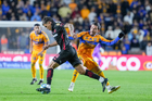 San Nicolás de los Garza, Nuevo León, 17 de enero de 2026. Ángel Correa y Diego Barbosa, durante el partido correspondiente a la jornada 3 del torneo Clausura 2026 de la Liga BBVA MX, entre los Tigres de la UANL y los Diablos Rojos del Toluca, realizado en el estadio Universitario. Foto: Imago7/ Andrea Jiménez