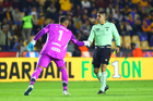 San Nicolás de los Garza, Nuevo León, 17 de enero de 2026. Nahuel Guzmán en reclamo a Michel Ricardo Espinoza, árbitro asistente, durante el partido correspondiente a la jornada 3 del torneo Clausura 2026 de la Liga BBVA MX, entre los Tigres de la UANL y los Diablos Rojos del Toluca, realizado en el estadio Universitario. Foto: Imago7/ Andrea Jiménez