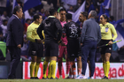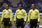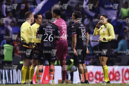 Puebla, Puebla, 17 de enero de 2026. Árbitros, durante el partido correspondiente a la jornada 3 del torneo Clausura 2026 de la Liga BBVA MX, entre la Máquina Celeste del Cruz Azul y el Club Puebla, realizado en el estadio Cuauhtémoc. Foto: Imago7/Mireya Novo