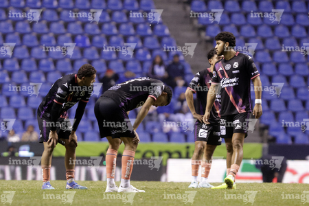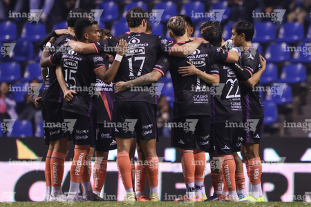 Puebla, Puebla, 17 de enero de 2026. Jugadores del Club Puebla, durante el partido correspondiente a la jornada 3 del torneo Clausura 2026 de la Liga BBVA MX, entre la Máquina Celeste del Cruz Azul y el Club Puebla, realizado en el estadio Cuauhtémoc. Foto: Imago7/ Diego Alducin