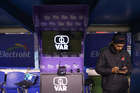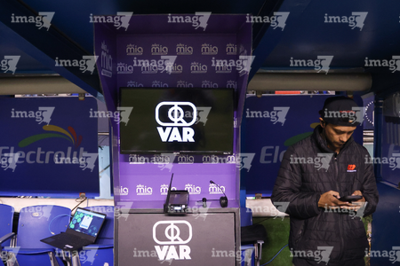 Puebla, Puebla, 17 de enero de 2026. Cabina del sistema de video asistente del árbitro VAR, durante el partido correspondiente a la jornada 3 del torneo Clausura 2026 de la Liga BBVA MX, entre la Máquina Celeste del Cruz Azul y el Club Puebla, realizado en el estadio Cuauhtémoc. Foto: Imago7/ Diego Alducin