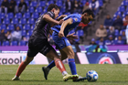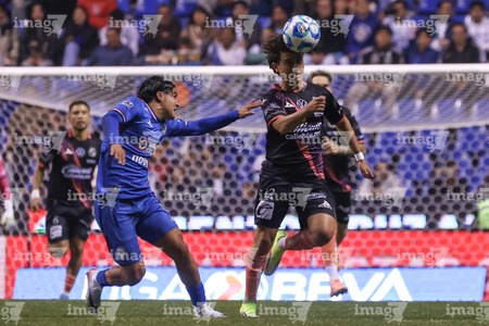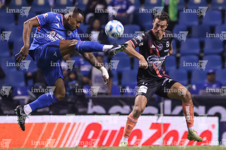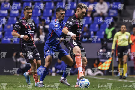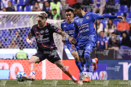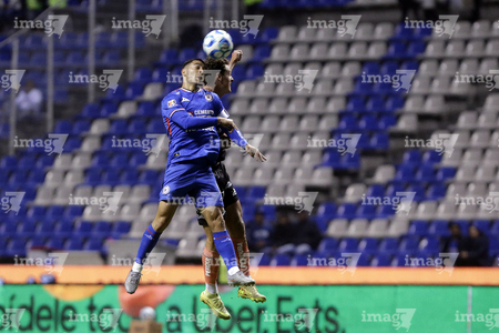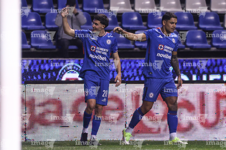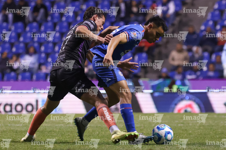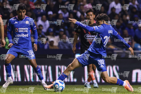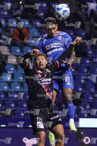 Puebla, Puebla, 17 de enero de 2026. José Pachuca y Amaury Morales, durante el partido correspondiente a la jornada 3 del torneo Clausura 2026 de la Liga BBVA MX, entre la Máquina Celeste del Cruz Azul y el Club Puebla, realizado en el estadio Cuauhtémoc. Foto: Imago7/Mireya Novo