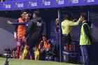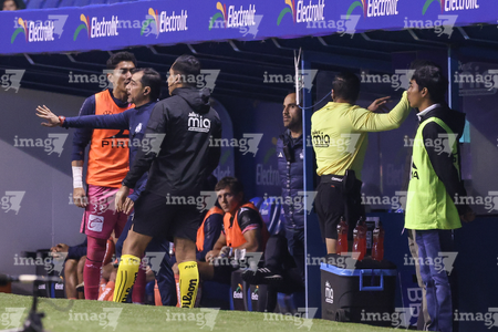Puebla, Puebla, 17 de enero de 2026. Nicolás Larcamón, director técnico y Albert Espigares, director técnico, durante el partido correspondiente a la jornada 3 del torneo Clausura 2026 de la Liga BBVA MX, entre la Máquina Celeste del Cruz Azul y el Club Puebla, realizado en el estadio Cuauhtémoc. Foto: Imago7/ Diego Alducin