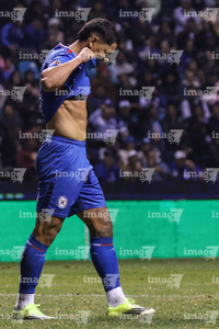 Puebla, Puebla, 17 de enero de 2026. Gabriel Fernández "Toro" en lamento, durante el partido correspondiente a la jornada 3 del torneo Clausura 2026 de la Liga BBVA MX, entre la Máquina Celeste del Cruz Azul y el Club Puebla, realizado en el estadio Cuauhtémoc. Foto: Imago7/ Diego Alducin