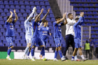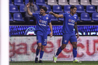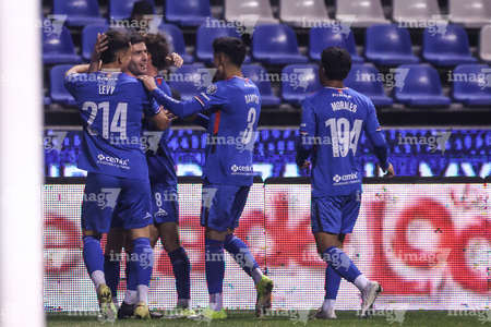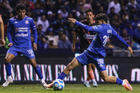 Puebla, Puebla, 17 de enero de 2026. Jugadores de Cruz Azul en festejo de gol, durante el partido correspondiente a la jornada 3 del torneo Clausura 2026 de la Liga BBVA MX, entre la Máquina Celeste del Cruz Azul y el Club Puebla, realizado en el estadio Cuauhtémoc. Foto: Imago7/ Diego Alducin