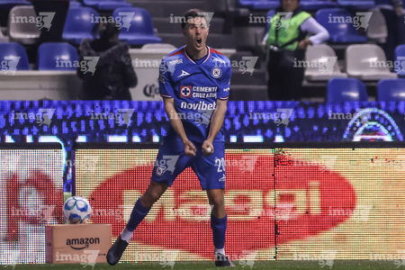 Puebla, Puebla, 17 de enero de 2026. José Paradela en festejo de gol, durante el partido correspondiente a la jornada 3 del torneo Clausura 2026 de la Liga BBVA MX, entre la Máquina Celeste del Cruz Azul y el Club Puebla, realizado en el estadio Cuauhtémoc. Foto: Imago7/ Diego Alducin