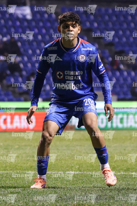 Puebla, Puebla, 17 de enero de 2026. Emiliano Gómez, durante el partido correspondiente a la jornada 3 del torneo Clausura 2026 de la Liga BBVA MX, entre la Máquina Celeste del Cruz Azul y el Club Puebla, realizado en el estadio Cuauhtémoc. Foto: Imago7/ Diego Alducin