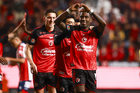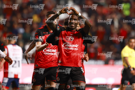 Tijuana, Baja California, 17 de enero de 2026. Adonis Preciado en festejo, durante el partido correspondiente a la jornada 3 del torneo Clausura 2026 de la Liga BBVA MX, entre los Xolos de Tijuana y el Atlético San Luis, realizado en el estadio Caliente. Foto: Imago7/ David Vega