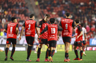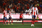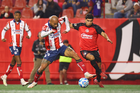 Tijuana, Baja California, 17 de enero de 2026. Jugadores del Atlético de San Luis, durante el partido correspondiente a la jornada 3 del torneo Clausura 2026 de la Liga BBVA MX, entre los Xolos de Tijuana y el Atlético de San Luis, realizado en el estadio Caliente. Foto: Imago7/Alejandro Gutiérrez Mora