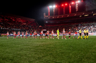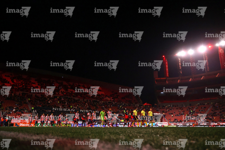 Tijuana, Baja California, 17 de enero de 2026. Protocolo, durante el partido correspondiente a la jornada 3 del torneo Clausura 2026 de la Liga BBVA MX, entre los Xolos de Tijuana y el Atlético San Luis, realizado en el estadio Caliente. Foto: Imago7/ David Vega