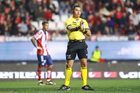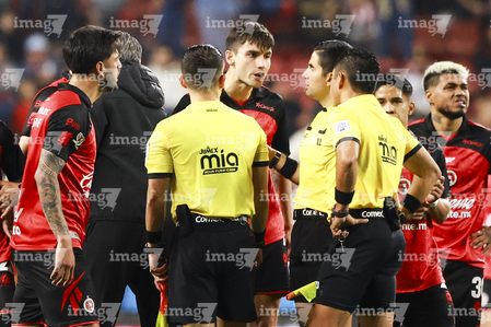 Tijuana, Baja California, 17 de enero de 2026. Víctor Alfonso Cáceres Hernández, árbitro central, durante el partido correspondiente a la jornada 3 del torneo Clausura 2026 de la Liga BBVA MX, entre los Xolos de Tijuana y el Atlético de San Luis, realizado en el estadio Caliente. Foto: Imago7/Alejandro Gutiérrez Mora
