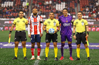 Tijuana, Baja California, 17 de enero de 2026. Protocolo, durante el partido correspondiente a la jornada 3 del torneo Clausura 2026 de la Liga BBVA MX , entre los Xolos de Tijuana y el Atlético San Luis, realizado en el estadio Caliente. Foto: Imago7/ Hugo Martinez