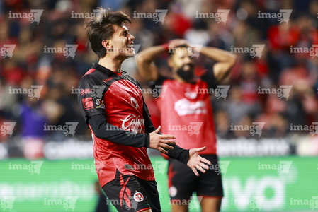Tijuana, Baja California, 17 de enero de 2026. Ramiro Árciga en lamento, durante el partido correspondiente a la jornada 3 del torneo Clausura 2026 de la Liga BBVA MX, entre los Xolos de Tijuana y el Atlético de San Luis, realizado en el estadio Caliente. Foto: Imago7/Alejandro Gutiérrez Mora