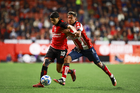 Tijuana, Baja California, 17 de enero de 2026. Joao Pedro (I), durante el partido correspondiente a la jornada 3 del torneo Clausura 2026 de la Liga BBVA MX , entre los Xolos de Tijuana y el Atlético San Luis, realizado en el estadio Caliente. Foto: Imago7/ Hugo Martinez