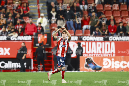 Tijuana, Baja California, 17 de enero de 2026. Fidel Barajas en festejo de gol, durante el partido correspondiente a la jornada 3 del torneo Clausura 2026 de la Liga BBVA MX , entre los Xolos de Tijuana y el Atlético San Luis, realizado en el estadio Caliente. Foto: Imago7/ Hugo Martinez