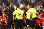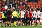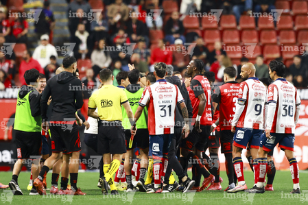 Tijuana, Baja California, 17 de enero de 2026. en conato de bronca, durante el partido correspondiente a la jornada 3 del torneo Clausura 2026 de la Liga BBVA MX, entre los Xolos de Tijuana y el Atlético de San Luis, realizado en el estadio Caliente. Foto: Imago7/Alejandro Gutiérrez Mora