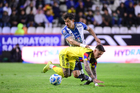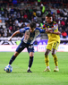 Pachuca, Hidalgo, 18 de enero de 2026. Christian Rivera y Brian Rodríguez, durante el partido correspondiente a la jornada 3 del torneo Clausura 2026 de la Liga BBVA MX, entre los Tuzos del Pachuca y las Águilas del América, realizado en el estadio Hidalgo. Foto: Imago7/ Jacqueline Pedraza