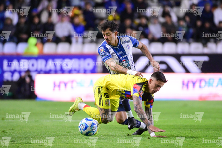 Pachuca, Hidalgo, 18 de enero de 2026. Alexis Gutiérrez y Christian Rivera, durante el partido correspondiente a la jornada 3 del torneo Clausura 2026 de la Liga BBVA MX, entre los Tuzos del Pachuca y las Águilas del América, realizado en el estadio Hidalgo. Foto: Imago7/ Alexis Chavez