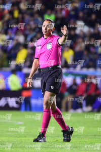 Pachuca, Hidalgo, 18 de enero de 2026. Luis Enrique Santander Aguirre, árbitro central, durante el partido correspondiente a la jornada 3 del torneo Clausura 2026 de la Liga BBVA MX, entre los Tuzos del Pachuca y las Águilas del América, realizado en el estadio Hidalgo. Foto: Imago7/ Alexis Chavez