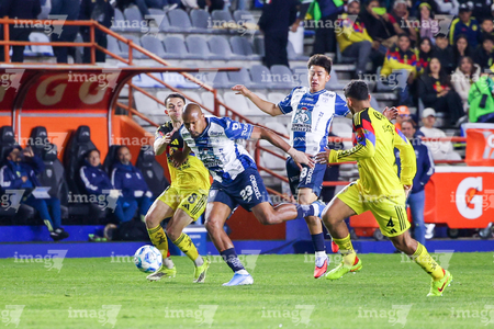 Pachuca, Hidalgo, 18 de enero de 2026. Kevin Álvarez y Alexei Domínguez, durante el partido correspondiente a la jornada 3 del torneo Clausura 2026 de la Liga BBVA MX, entre los Tuzos del Pachuca y las Águilas del América, realizado en el estadio Hidalgo. Foto: Imago7/ Elizabeth Hernández
