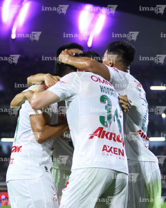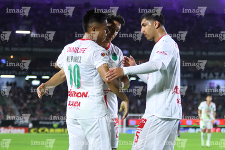 Mazatlán, Sinaloa, 6 de febrero de 2026. Jugadores de Chivas en festejo de gol, durante el partido correspondiente a la jornada 5 del torneo Clausura 2026 de la Liga BBVA MX, entre los Cañoneros del Mazatlán FC y las Chivas Rayadas del Guadalajara, realizado en el estadio El Encanto. Foto: Imago7/ Juan Carlos Cubeyro.