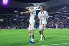Mazatlán, Sinaloa, 6 de febrero de 2026. Efraín Álvarez en festejo de gol, durante el partido correspondiente a la jornada 5 del torneo Clausura 2026 de la Liga BBVA MX, entre los Cañoneros del Mazatlán FC y las Chivas Rayadas del Guadalajara, realizado en el estadio El Encanto. Foto: Imago7/ Juan Carlos Cubeyro.