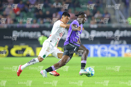 Mazatlán, Sinaloa, 6 de febrero de 2026. Daniel Aguirre y Luiz Teodora, durante el partido correspondiente a la jornada 5 del torneo Clausura 2026 de la Liga BBVA MX, entre los Cañoneros del Mazatlán FC y las Chivas Rayadas del Guadalajara, realizado en el estadio El Encanto. Foto: Imago7/ Juan Carlos Cubeyro.