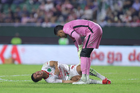 Mazatlán, Sinaloa, 6 de febrero de 2026. Daniel Aguirre resultó lesionado, durante el partido correspondiente a la jornada 5 del torneo Clausura 2026 de la Liga BBVA MX, entre los Cañoneros del Mazatlán FC y las Chivas Rayadas del Guadalajara, realizado en el estadio El Encanto. Foto: Imago7/ Juan Carlos Cubeyro.