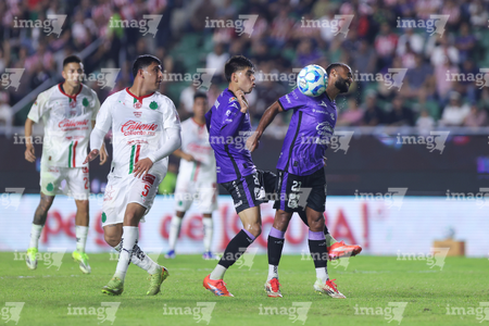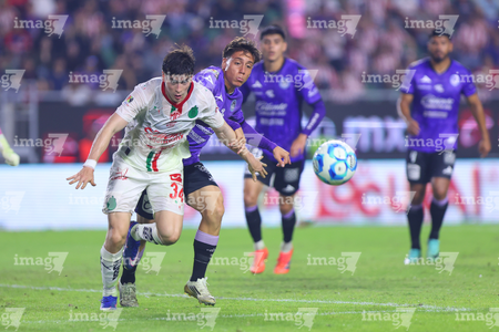 Mazatlán, Sinaloa, 6 de febrero de 2026. Brian Gutierrez y Jordan Sierra, durante el partido correspondiente a la jornada 5 del torneo Clausura 2026 de la Liga BBVA MX, entre los Cañoneros del Mazatlán FC y las Chivas Rayadas del Guadalajara, realizado en el estadio El Encanto. Foto: Imago7/ Juan Carlos Cubeyro.