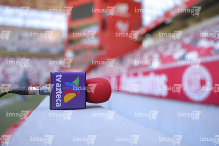 Toluca, Estado de México, 7 de febrero de 2026. Micrófono de TV Azteca, durante el partido correspondiente a la jornada 5 del torneo Clausura 2026 de la Liga BBVA MX, entre los Diablos Rojos del Toluca y la Máquina Celeste del Cruz Azul, realizado en el estadio Nemesio Diez. Foto: Imago7/ Rafael Vadillo