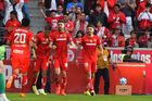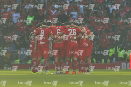 Toluca, Estado de México, 7 de febrero de 2026. Jugadores del Toluca, durante el partido correspondiente a la jornada 5 del torneo Clausura 2026 de la Liga BBVA MX, entre los Diablos Rojos del Toluca y la Máquina Celeste del Cruz Azul, realizado en el estadio Nemesio Diez. Foto: Imago7/Daniel Arriaga