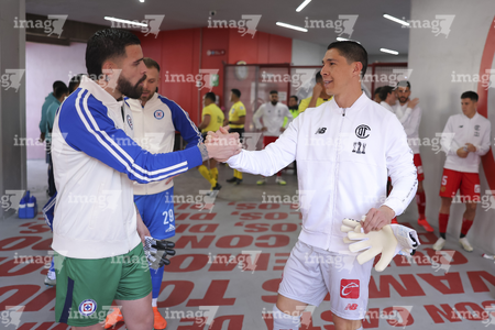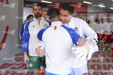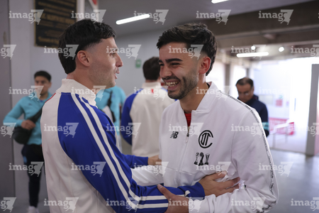 Toluca, Estado de México, 7 de febrero de 2026. Andrés Gudiño y Hugo González, durante el partido correspondiente a la jornada 5 del torneo Clausura 2026 de la Liga BBVA MX, entre los Diablos Rojos del Toluca y la Máquina Celeste del Cruz Azul, realizado en el estadio Nemesio Diez. Foto: Imago7/ Rafael Vadillo