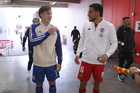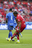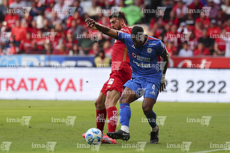 Toluca, Estado de México, 7 de febrero de 2026. Paulinho y Willer Ditta, durante el partido correspondiente a la jornada 5 del torneo Clausura 2026 de la Liga BBVA MX, entre los Diablos Rojos del Toluca y la Máquina Celeste del Cruz Azul, realizado en el estadio Nemesio Diez. Foto: Imago7/ Rafael Vadillo