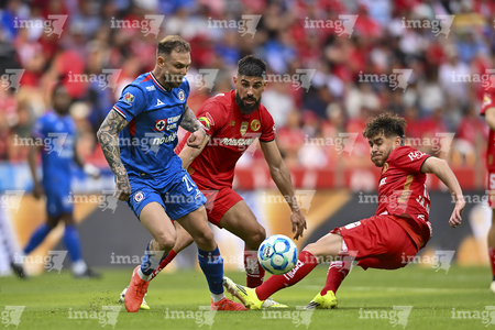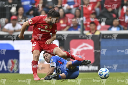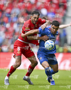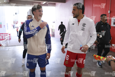 Toluca, Estado de México, 7 de febrero de 2026. Rodolfo Rotondi y Jesús Angulo "Canelo", durante el partido correspondiente a la jornada 5 del torneo Clausura 2026 de la Liga BBVA MX, entre los Diablos Rojos del Toluca y la Máquina Celeste del Cruz Azul, realizado en el estadio Nemesio Diez. Foto: Imago7/Etzel Espinosa