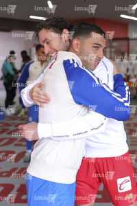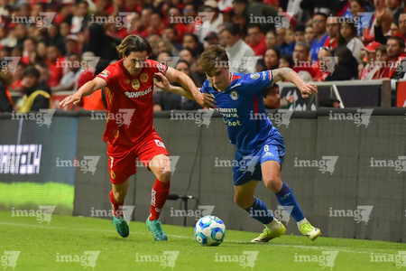 Toluca, Estado de México, 7 de febrero de 2026. Mateo Levy y Marcel Ruiz, durante el partido correspondiente a la jornada 5 del torneo Clausura 2026 de la Liga BBVA MX, entre los Diablos Rojos del Toluca y la Máquina Celeste del Cruz Azul, realizado en el estadio Nemesio Diez. Foto: Imago7/ Arturo Hernández