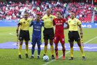 Toluca, Estado de México, 7 de febrero de 2026. Luis Enrique Santander, árbitro central, durante el partido correspondiente a la jornada 5 del torneo Clausura 2026 de la Liga BBVA MX, entre los Diablos Rojos del Toluca y la Máquina Celeste del Cruz Azul, realizado en el estadio Nemesio Diez. Foto: Imago7/ Rafael Vadillo