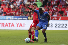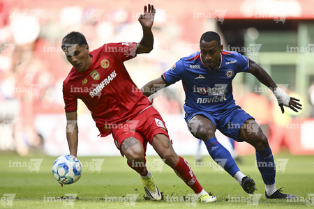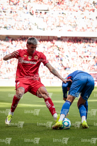 Toluca, Estado de México, 7 de febrero de 2026. Nicolas Castro y Willer Ditta, durante el partido correspondiente a la jornada 5 del torneo Clausura 2026 de la Liga BBVA MX, entre los Diablos Rojos del Toluca y la Máquina Celeste del Cruz Azul, realizado en el estadio Nemesio Diez. Foto: Imago7/Etzel Espinosa