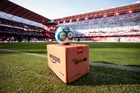 Toluca, Estado de México, 7 de febrero de 2026. Balón de futbol Voit Aereus sobre caja de Amazon, durante el partido correspondiente a la jornada 5 del torneo Clausura 2026 de la Liga BBVA MX, entre los Diablos Rojos del Toluca y la Máquina Celeste del Cruz Azul, realizado en el estadio Nemesio Diez. Foto: Imago7/Daniel Arriaga