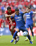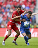 Toluca, Estado de México, 7 de febrero de 2026. Hugo González y Christian Ebere, durante el partido correspondiente a la jornada 5 del torneo Clausura 2026 de la Liga BBVA MX, entre los Diablos Rojos del Toluca y la Máquina Celeste del Cruz Azul, realizado en el estadio Nemesio Diez. Foto: Imago7/ Arturo Hernández