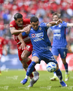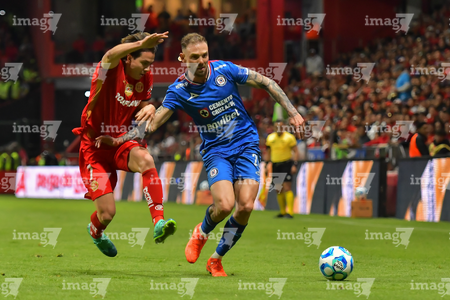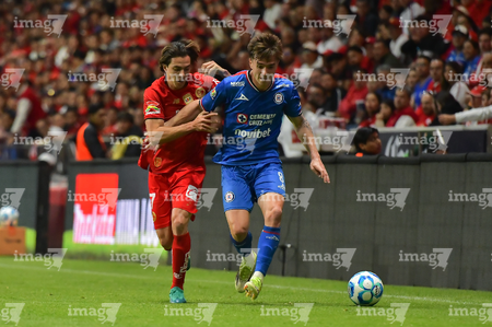 Toluca, Estado de México, 7 de febrero de 2026. Carlos Rodríguez y Santiago Simón, durante el partido correspondiente a la jornada 5 del torneo Clausura 2026 de la Liga BBVA MX, entre los Diablos Rojos del Toluca y la Máquina Celeste del Cruz Azul, realizado en el estadio Nemesio Diez. Foto: Imago7/ Rafael Vadillo