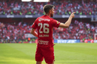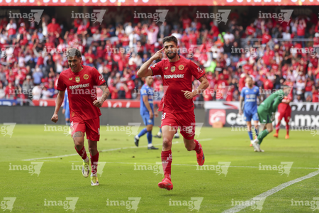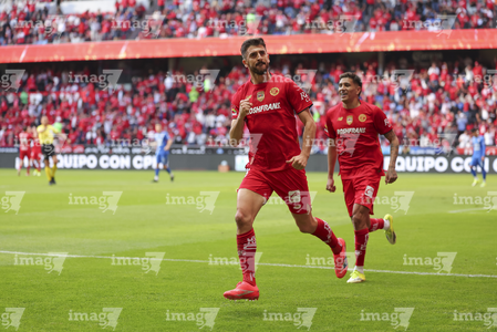 Toluca, Estado de México, 7 de febrero de 2026. Hugo González en festejo, durante el partido correspondiente a la jornada 5 del torneo Clausura 2026 de la Liga BBVA MX, entre los Diablos Rojos del Toluca y la Máquina Celeste del Cruz Azul, realizado en el estadio Nemesio Diez. Foto: Imago7/Etzel Espinosa