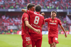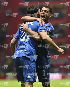 Toluca, Estado de México, 7 de febrero de 2026. Paulinho y Nicolas Castro en festejo de gol, durante el partido correspondiente a la jornada 5 del torneo Clausura 2026 de la Liga BBVA MX, entre los Diablos Rojos del Toluca y la Máquina Celeste del Cruz Azul, realizado en el estadio Nemesio Diez. Foto: Imago7/ Rafael Vadillo
