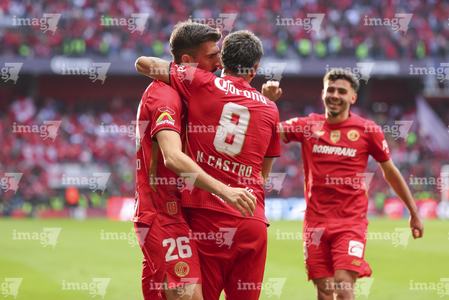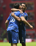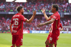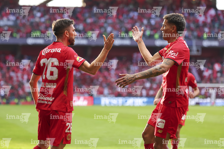 Toluca, Estado de México, 7 de febrero de 2026. Erik Lira y Luka Romero en festejo, durante el partido correspondiente a la jornada 5 del torneo Clausura 2026 de la Liga BBVA MX, entre los Diablos Rojos del Toluca y la Máquina Celeste del Cruz Azul, realizado en el estadio Nemesio Diez. Foto: Imago7/ Arturo Hernández
