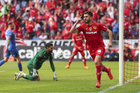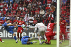 Toluca, Estado de México, 7 de febrero de 2026. Paulinho anota gol, durante el partido correspondiente a la jornada 5 del torneo Clausura 2026 de la Liga BBVA MX, entre los Diablos Rojos del Toluca y la Máquina Celeste del Cruz Azul, realizado en el estadio Nemesio Diez. Foto: Imago7/Etzel Espinosa