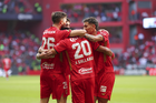 Toluca, Estado de México, 7 de febrero de 2026. Jugadores del Toluca en festejo de gol, durante el partido correspondiente a la jornada 5 del torneo Clausura 2026 de la Liga BBVA MX, entre los Diablos Rojos del Toluca y la Máquina Celeste del Cruz Azul, realizado en el estadio Nemesio Diez. Foto: Imago7/ Rafael Vadillo