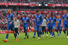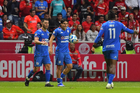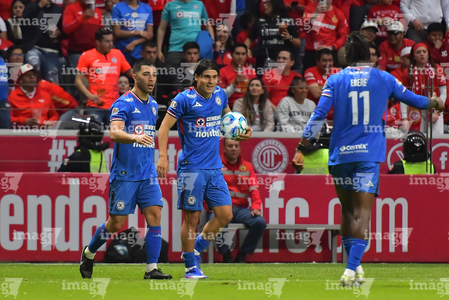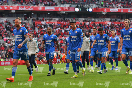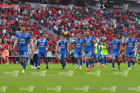 Toluca, Estado de México, 7 de febrero de 2026. Jugadores de Cruz Azul, durante el partido correspondiente a la jornada 5 del torneo Clausura 2026 de la Liga BBVA MX, entre los Diablos Rojos del Toluca y la Máquina Celeste del Cruz Azul, realizado en el estadio Nemesio Diez. Foto: Imago7/ Arturo Hernández