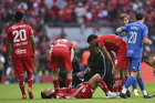 Toluca, Estado de México, 7 de febrero de 2026. Nicolas Castro resultó lesionado, durante el partido correspondiente a la jornada 5 del torneo Clausura 2026 de la Liga BBVA MX, entre los Diablos Rojos del Toluca y la Máquina Celeste del Cruz Azul, realizado en el estadio Nemesio Diez. Foto: Imago7/ Rafael Vadillo