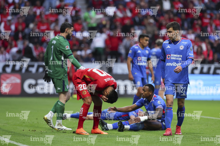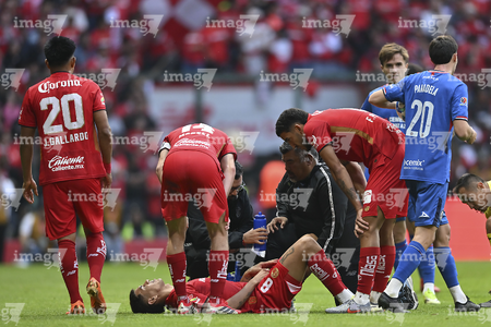 Toluca, Estado de México, 7 de febrero de 2026. Nicolas Castro resultó lesionado, durante el partido correspondiente a la jornada 5 del torneo Clausura 2026 de la Liga BBVA MX, entre los Diablos Rojos del Toluca y la Máquina Celeste del Cruz Azul, realizado en el estadio Nemesio Diez. Foto: Imago7/Etzel Espinosa