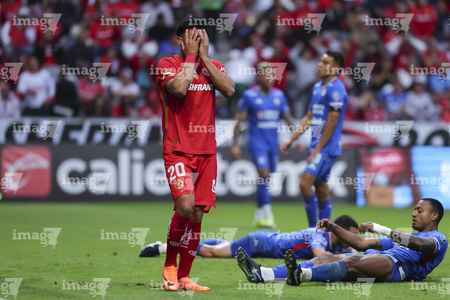 Toluca, Estado de México, 7 de febrero de 2026. Jesús Gallardo en lamento, durante el partido correspondiente a la jornada 5 del torneo Clausura 2026 de la Liga BBVA MX, entre los Diablos Rojos del Toluca y la Máquina Celeste del Cruz Azul, realizado en el estadio Nemesio Diez. Foto: Imago7/Daniel Arriaga